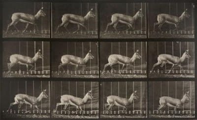 Uma série de fotografias de um antílope em movimento, fotografado por Eadweard Muybridge, entre 1883 e 1886, publicado em 1887.